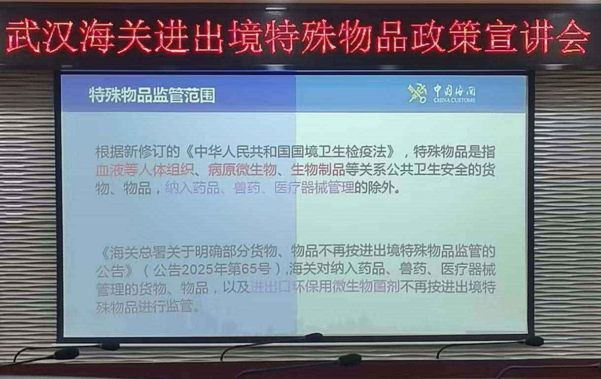 为深入贯彻新修订的《中华人民共和国国境卫生检疫法》,助力企业精准把握进出境特殊物品生物安全风险分级新变化,规范特殊物品进出境管理,2025 年 9 月 17 日,武昌海关举办进出境特殊物品政策宣讲会,武汉圣洛捷生物(Abebio)积极派员参会,以更好地开展相关业务。