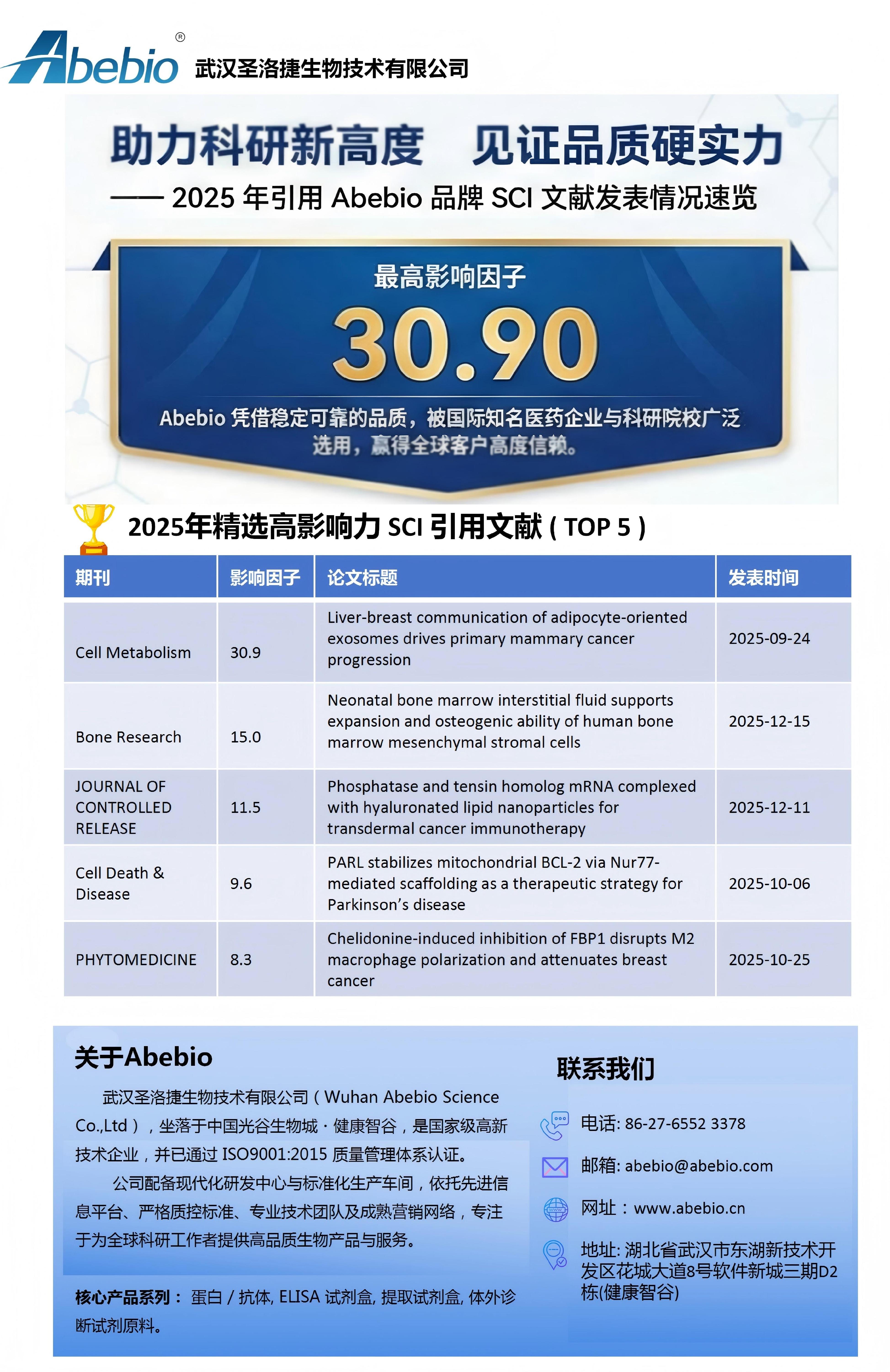 Current Position: Home>>新闻动态>>公司新闻 >>2025年引用Abebio品牌 SCI 文献发表情况速览