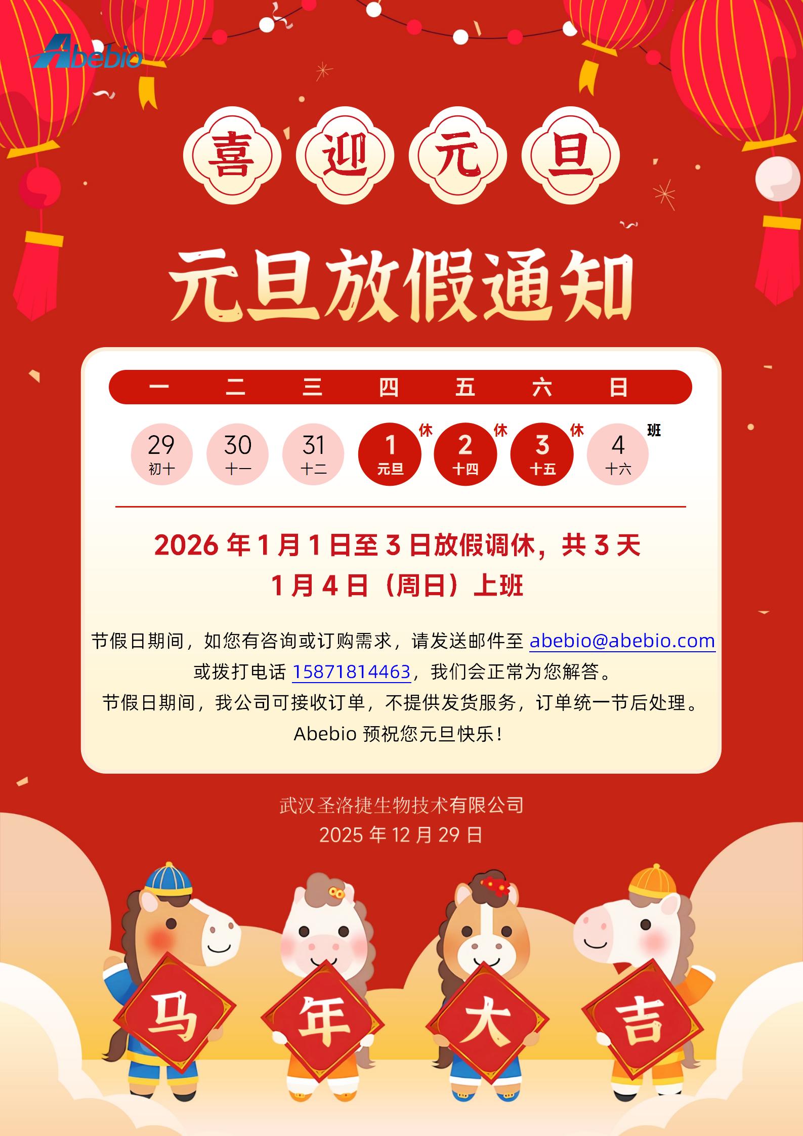 Current Position: Home>>新闻动态>>公司新闻 >>Abebio 2026元旦放假通知
